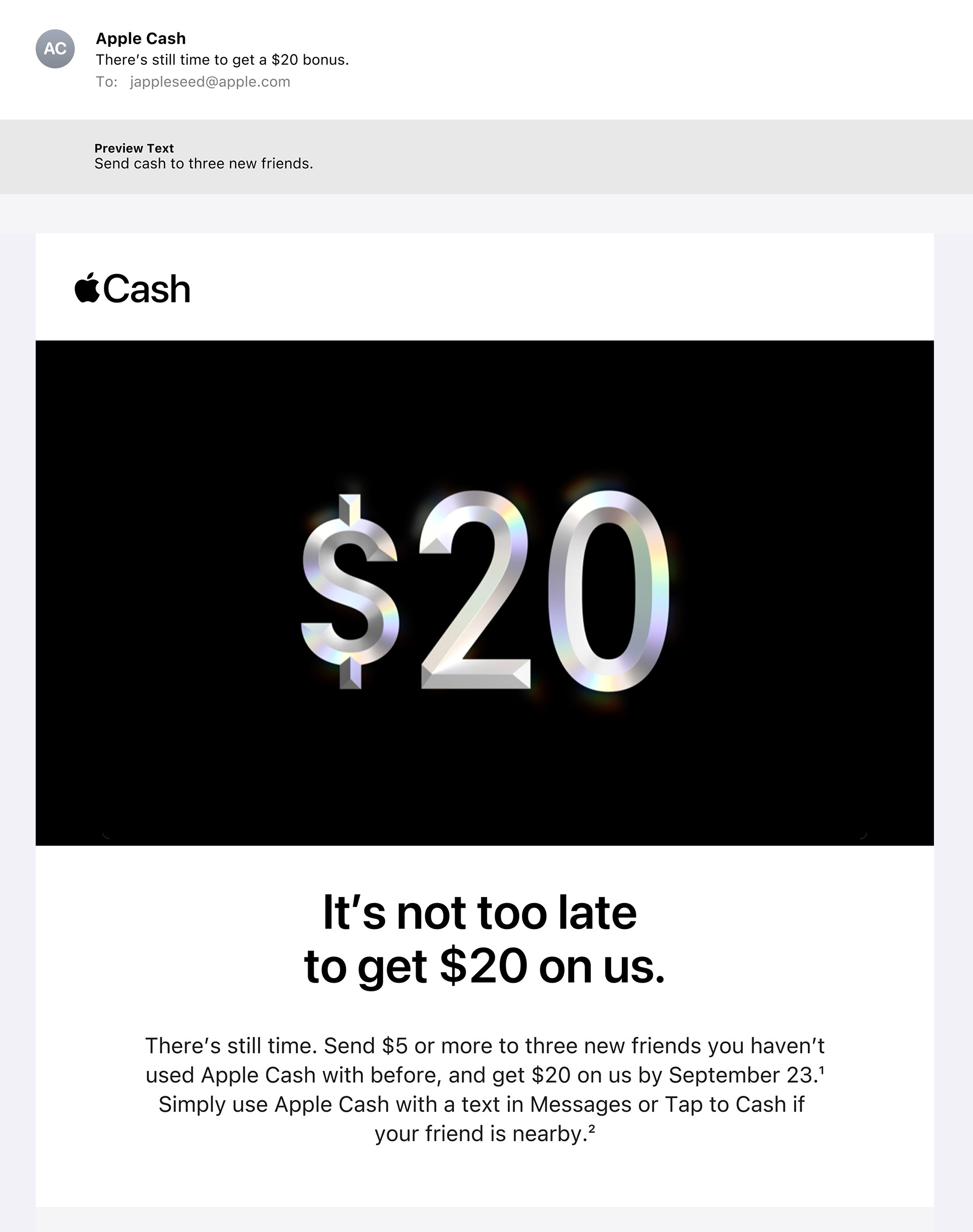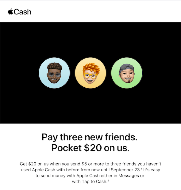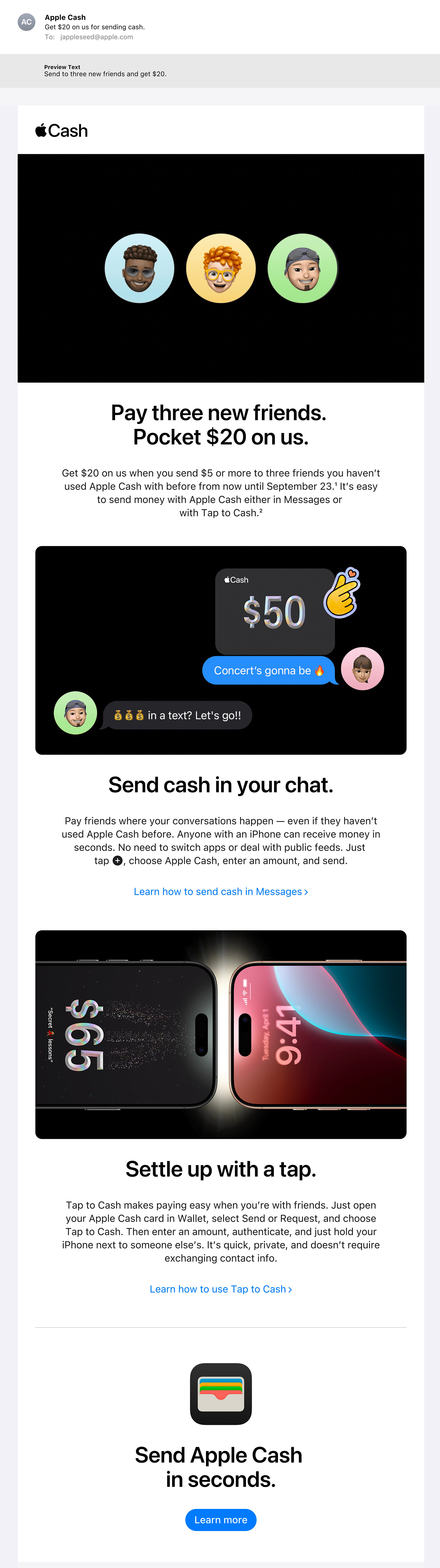 Apple Cash wanted to get more people into the habit of sharing cash on their platform. This email-based promotion rewarded those who shared with friends, even more cash.