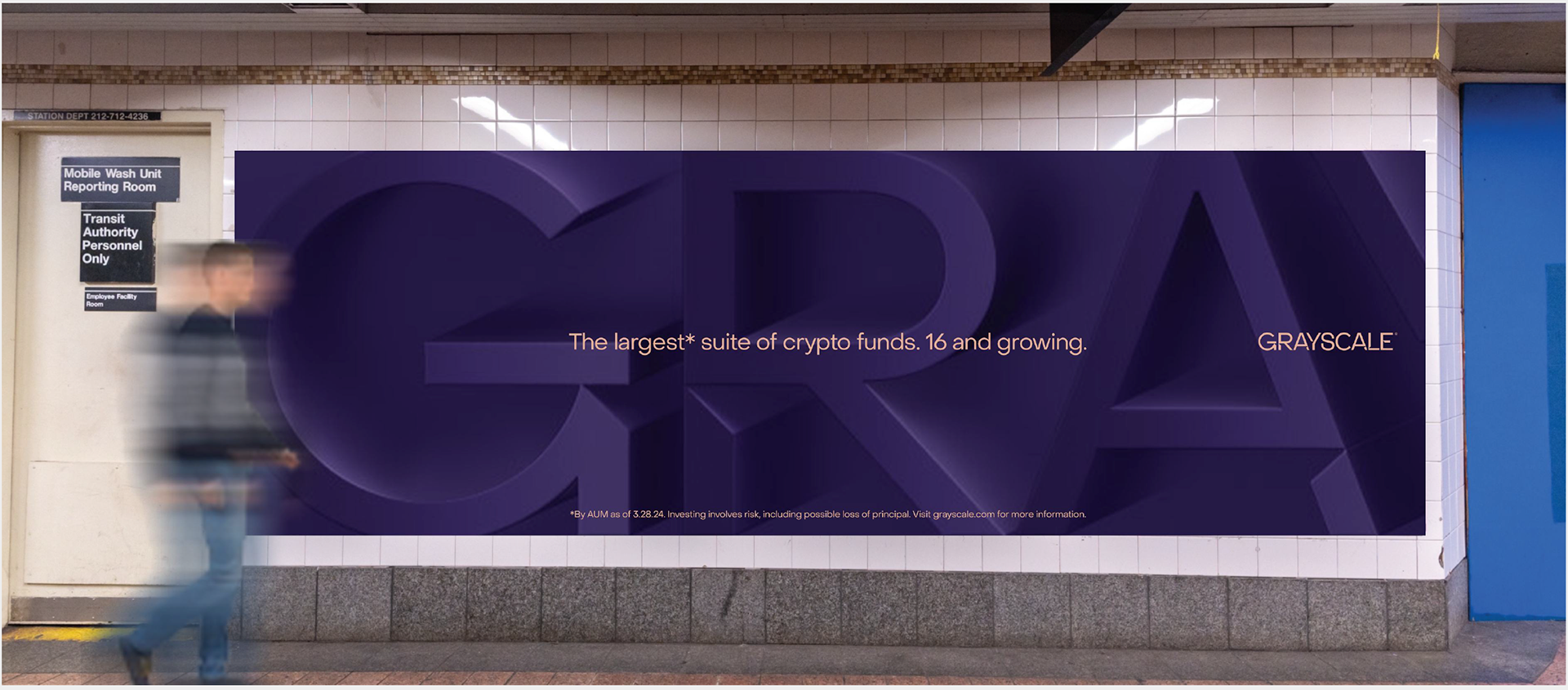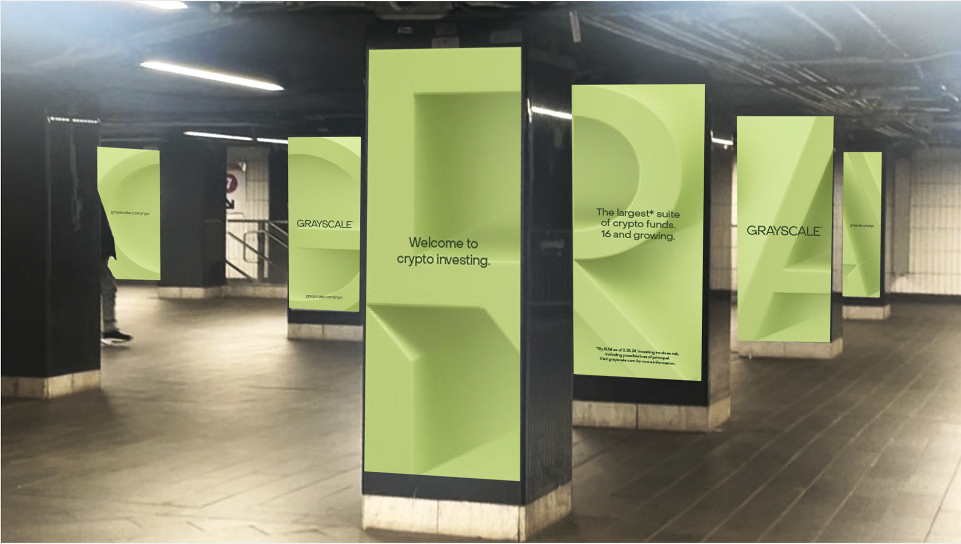 Crypto pioneer Grayscale wanted to retool its brand to help prepare it for its meteoric growth in the next few years. I was responsible for writing the verbal brand identity and creating concepts/headlines for a NY subway takeover.